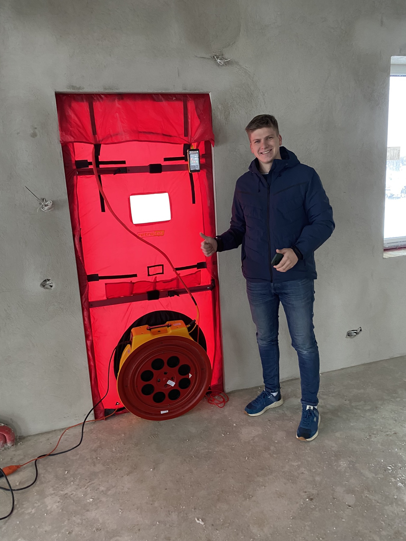 Sandarumo testo metu nustatome pastato energetinio naudingumo klasę. Naudodami dūmų generatorių, tiksliai identifikuojame nesandarias vietas ir informuojame užsakovą apie jų buvimo vietas, padedant užtikrinti pastato energinį efektyvumą.